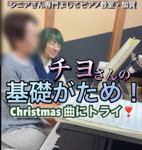メリークリスマス〉の声が飛び交いました。ソロ演奏も素敵に演奏されました。シニアさんの一生懸命は感動で涙が出ます。〈ソロ演奏はシークレットでお願いします〉と言われているので