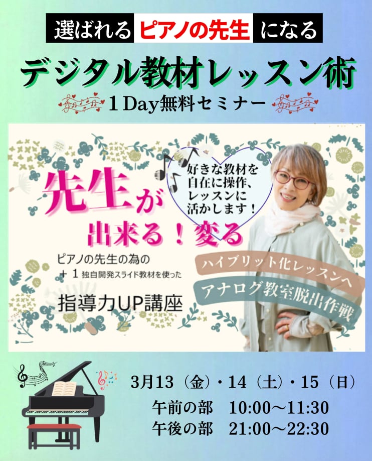 私は独自開発Musicスライド教材クリエイターでシニアさんピアノ指導の専門家として